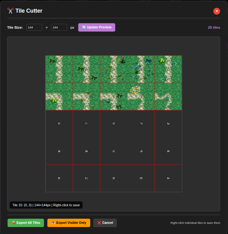 TileConjurer is a free, browser-based tile editor designed for RPG Maker developers and indie game creators. No installation required - just load and create!
